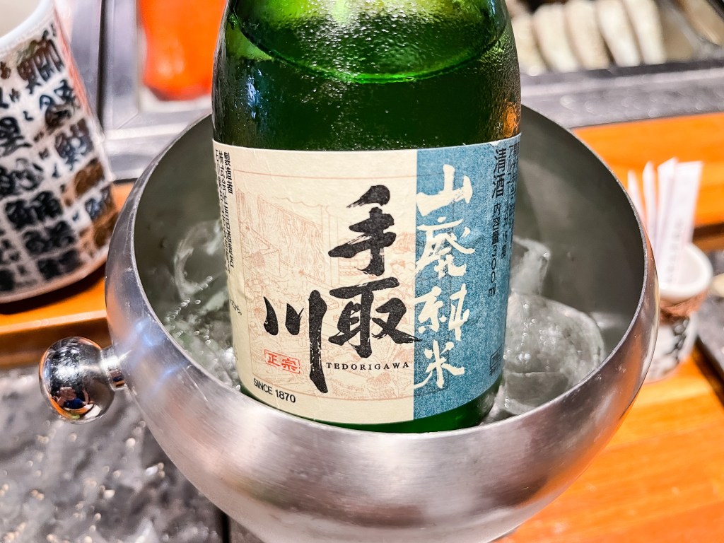 於是點了一支「手取川山廢純米」(300ml)精米歩合60%、 米種是山田錦、五百萬石等米種,酒精濃度15%。