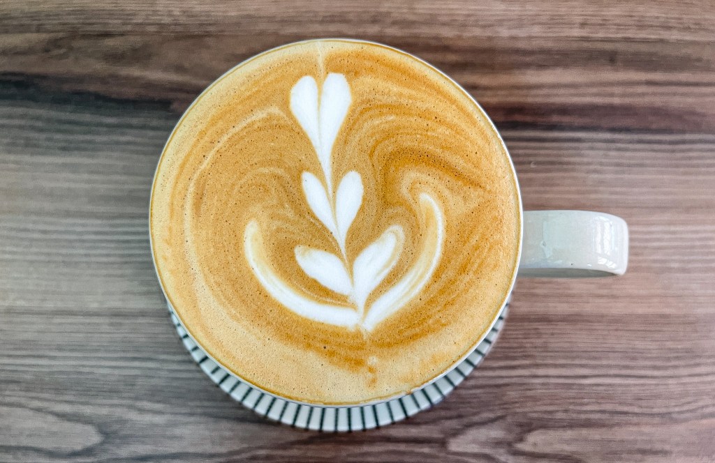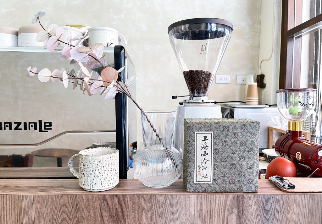 看著細緻的熱蒸奶,光看表面的拉花我便有好心情。拉花焦糖色,輕盈嬌柔的視覺享受,配上古味昭和感的杯子,心情極好。