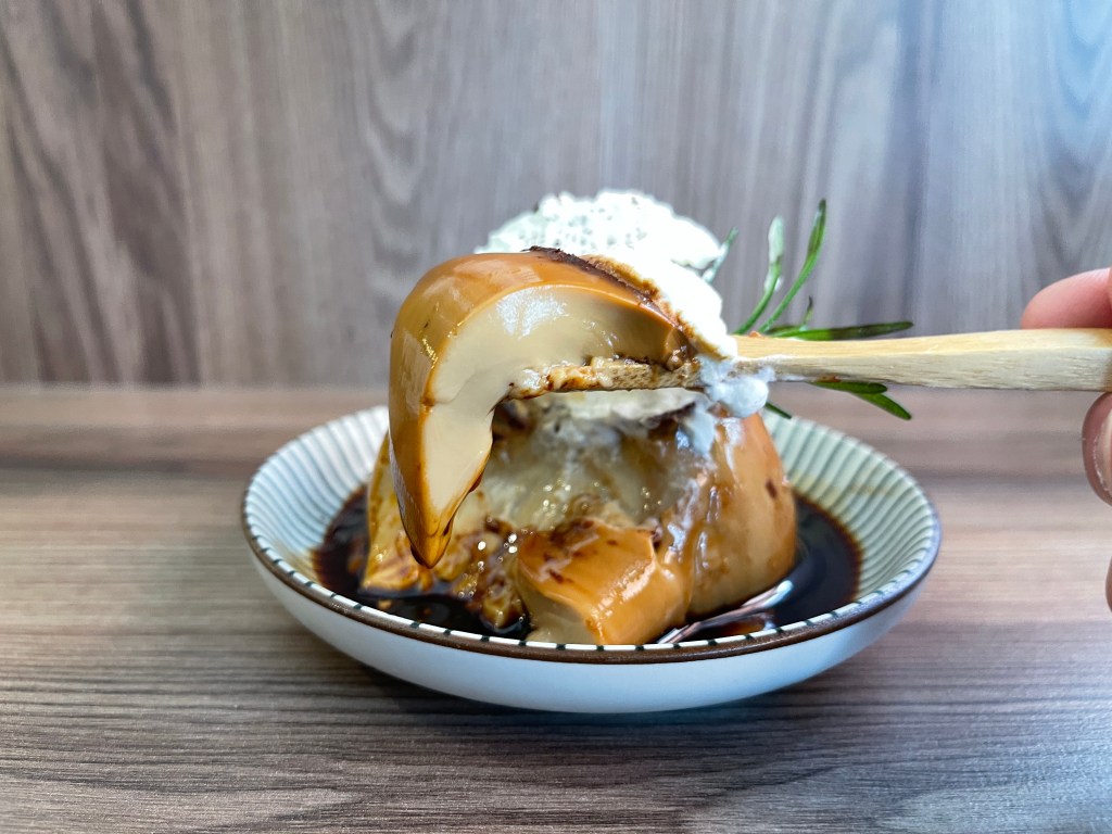 我輕挖一瓢入口,稠密綿綿滑順感,入口更是綿細香甜略帶酒香,糖漿的甜恰恰對我的胃口,而這塊布丁本體更是我吃過美好的味道之一,莫名再生一種幸福的感覺。