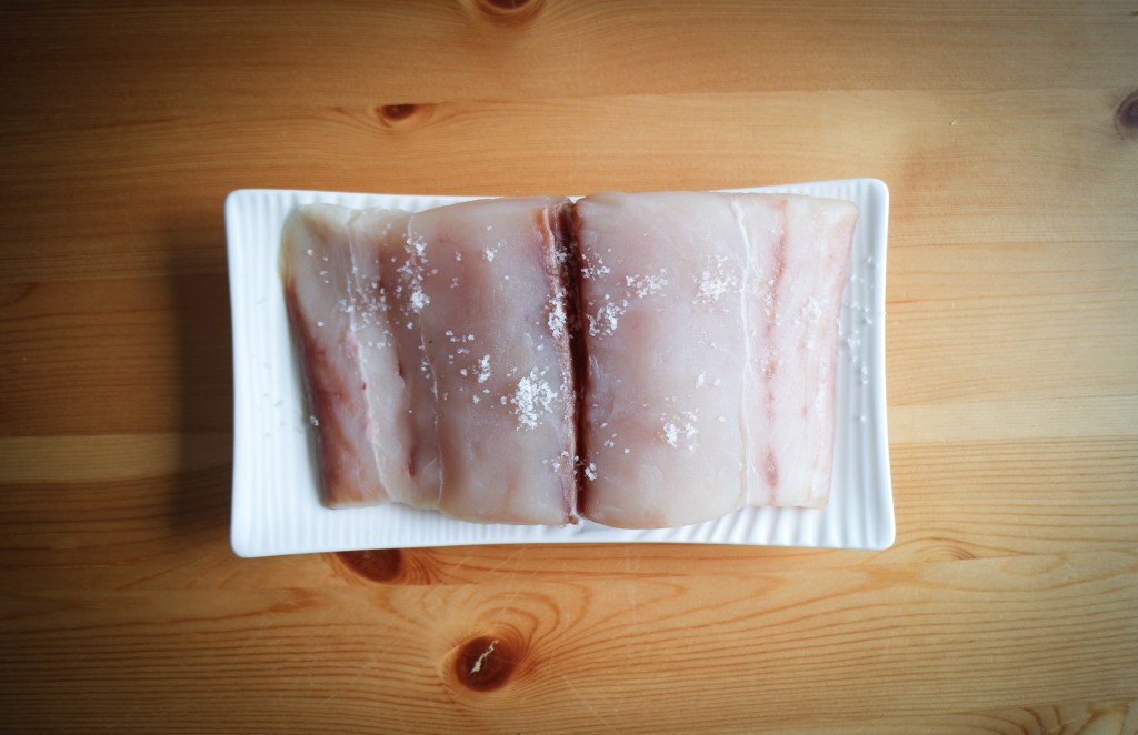 第三步,將鬼頭刀兩飯以鹽巴與黑胡椒做醃製,並放在冰箱靜置,備用。