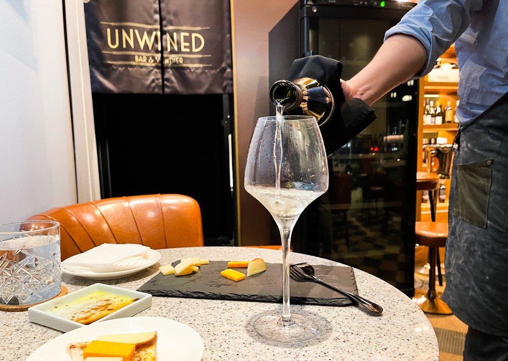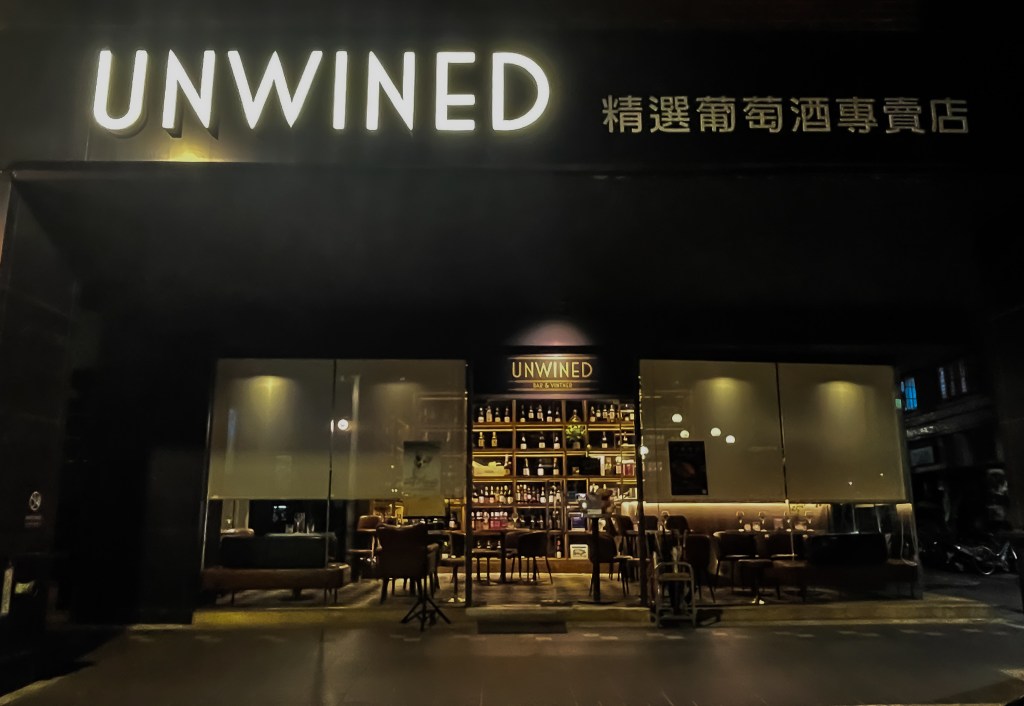 今天來到位在敦化南路鄰近遠東飯店且在路段對面的角落的葡萄酒吧UNWINED BAR & VINTER,曾經過幾次。這回帶著有好奇的心態觀看酒單。然後決定品飲以及放鬆一下這夜晚給自己。