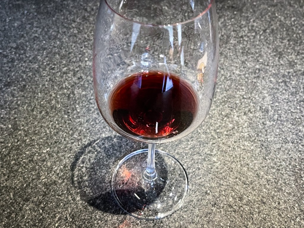飲下後,光滑圓潤飽滿而富裕,逐漸有黑棗、果梅味逐漸浸染鼻腔,乾澀香草香料木質與黑胡椒濕木頭感直接影響腦門,酒體中等果乾粗澀感在口中摩擦發酵,後味帶著酸爽果梅味、黑棗滋味,平順滑過。