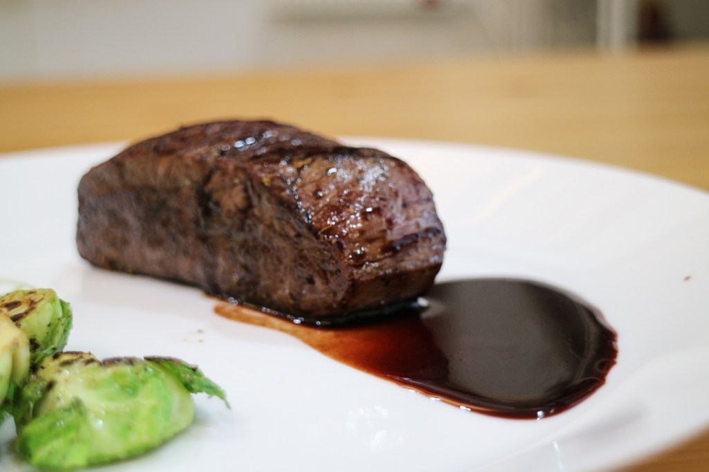 搭配醬汁,吃下酒香果甜,帶著清楚的馬告滋味,就是有那麼點像薑味,但輕輕的不重,因此非常美味,沾些海鹽然後搭配紅酒肯定也非常美味。搭配配菜孢子橄欖恰好,焦香清脆,微鹹滋味一切都剛剛好啊!!好險這回成功了。