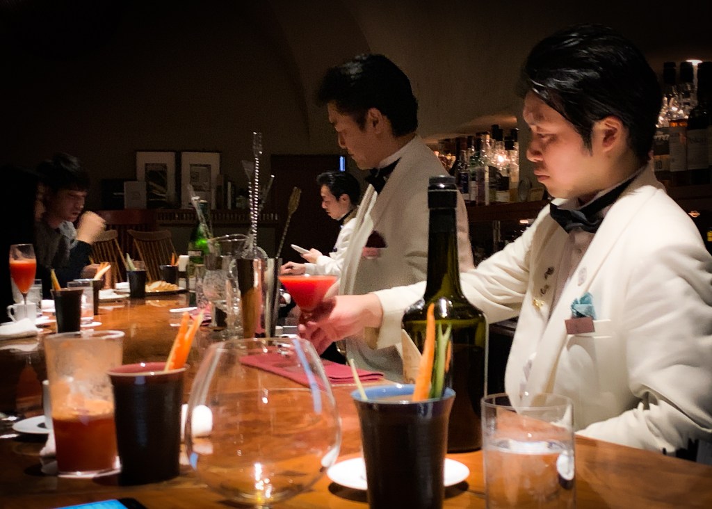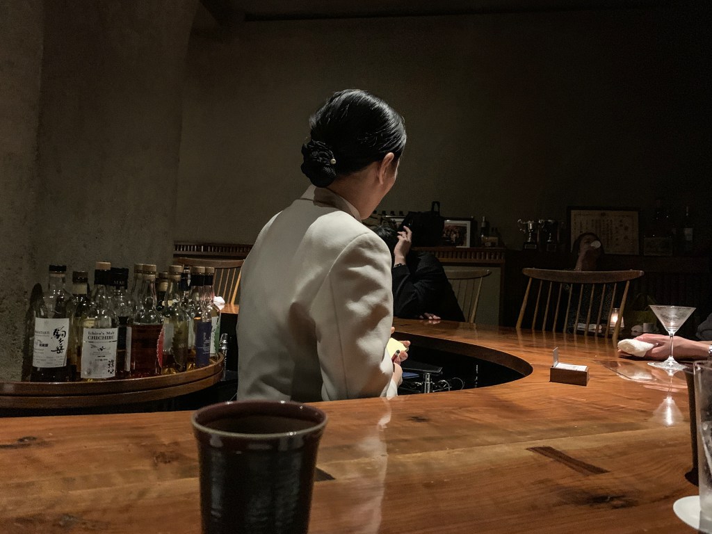 店長調酒師佐藤典之Noriyuki Sato擁有二十多年的調酒經歷,也曾經來臺灣客座調酒,店裡所有人員一如銀座日本酒吧的一脈風格,白色西裝鼻挺,調製酒的時候莊嚴不嬉鬧,待客十分親切熟稔,相當放鬆的環境。