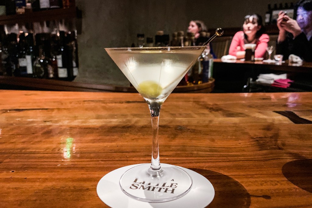 可以吃完橄欖再顆ㄧ口,橄欖鹹味一時而後甘甜,尾韻頗為纏口,十分理想的馬丁尼。