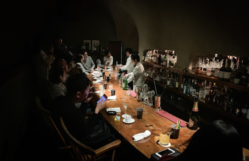 以橢圓形排列的吧檯座位圍繞著中央酒櫃,這與進門前的景色十分衝突,如此也別於銀座各家酒吧。這是由「東京都現代美術館」的建築師柳澤孝彥所設計打造的銀座新穎酒吧設計風格。