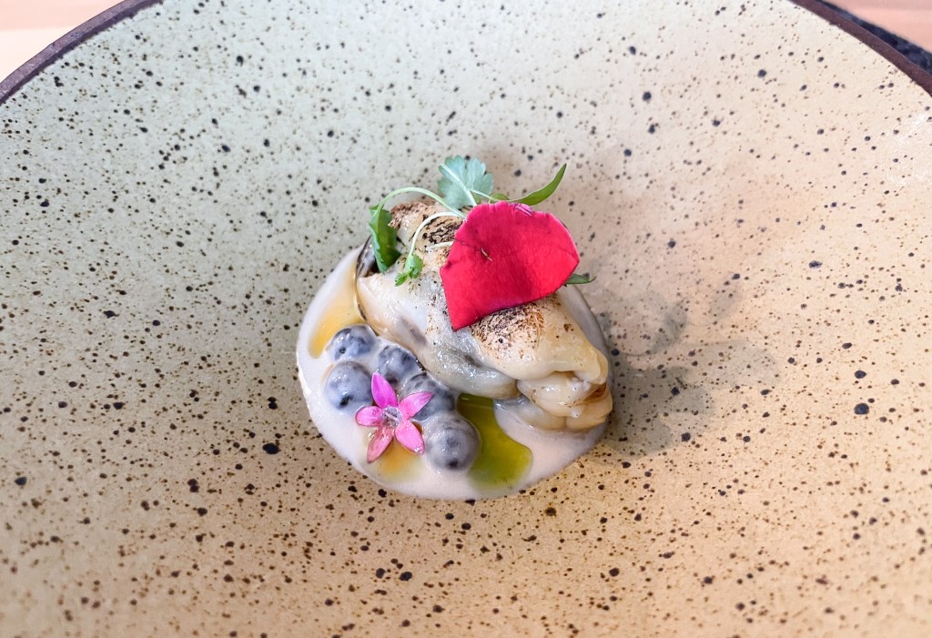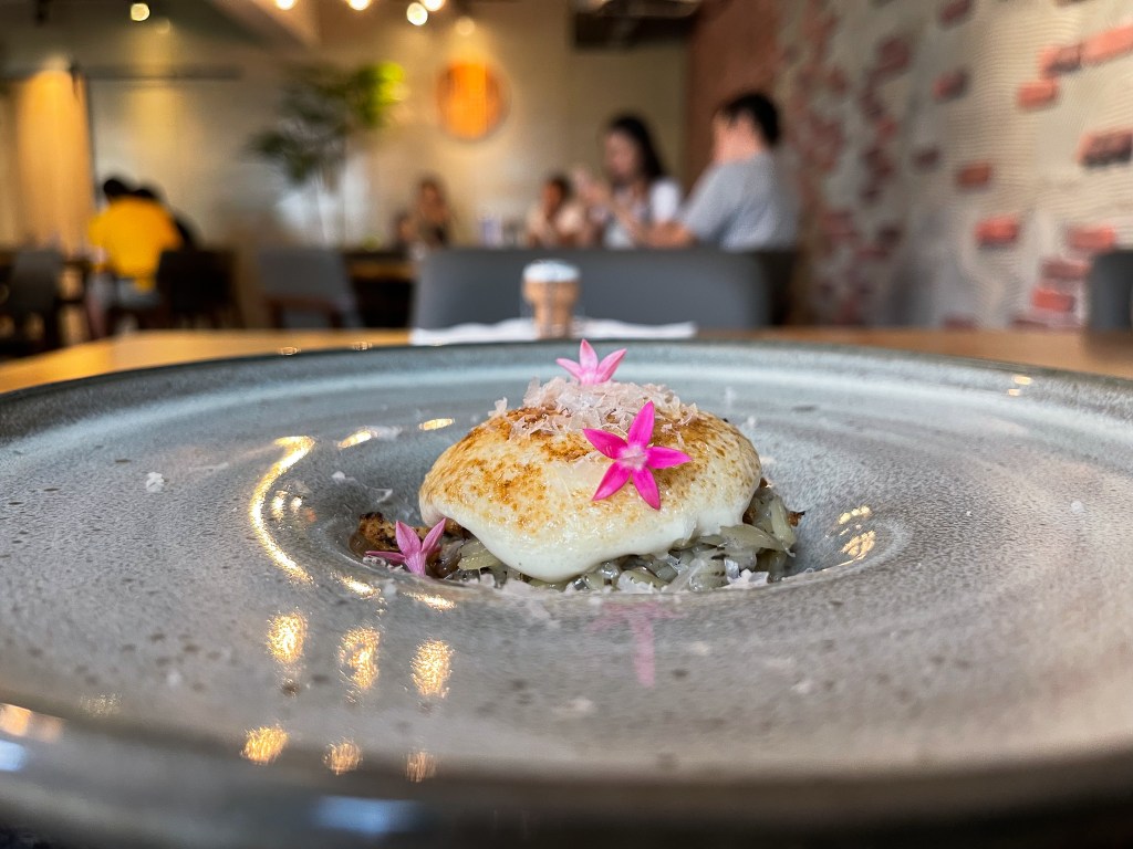 這道馬祖淡菜碗熱襯出一種炙燒的辛香氣,這味道相當熟悉,是用什麼木頭燻製的嗎?許多以炙燒料文明的料理店也都曾有如此風味。吃下後,這醬料香草油還有珍珠奶茶的色調以及配料十分創意,溫熱入味,調理的美味。