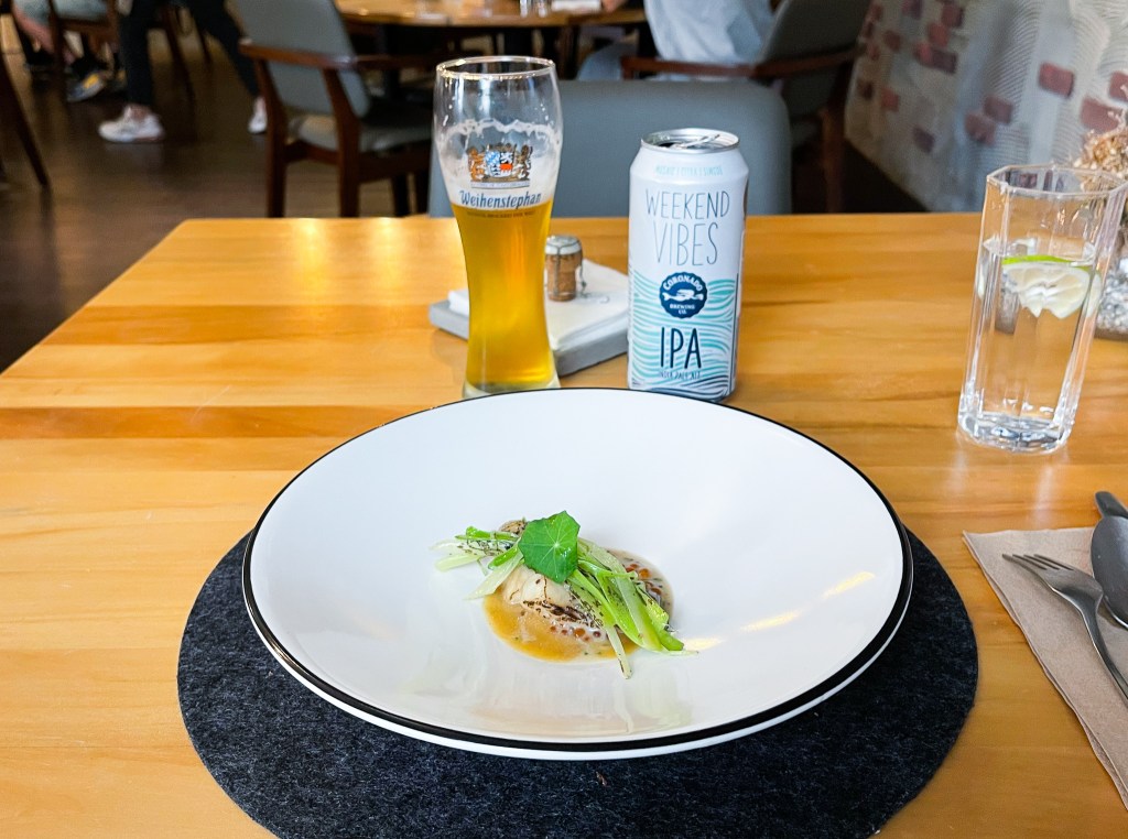 我在餐前接受推薦,選擇了美國IPA「週末震盪」。觀看色澤調性,感受麥芽輕滑,氣味確實是IPA的感受,有乾澀感、木質氣味、百香果味,是非常的IPA。