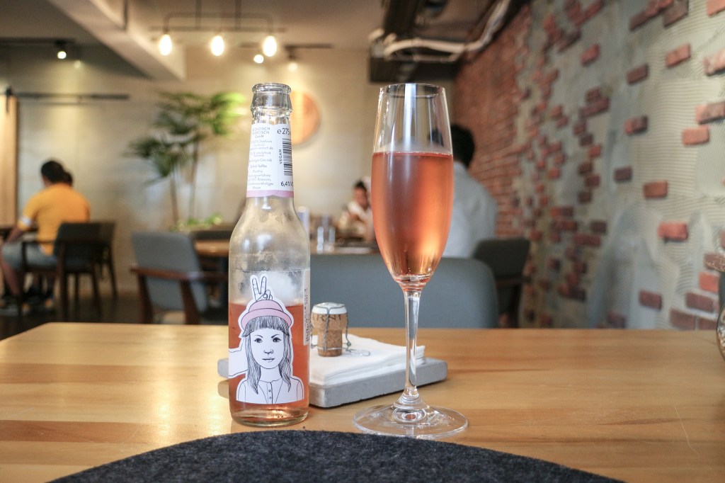 搭配粉紅氣泡酒,讓酒的風味變得更像一般氣泡酒,乾澀微酸帶氣泡刺激,十分平穩。