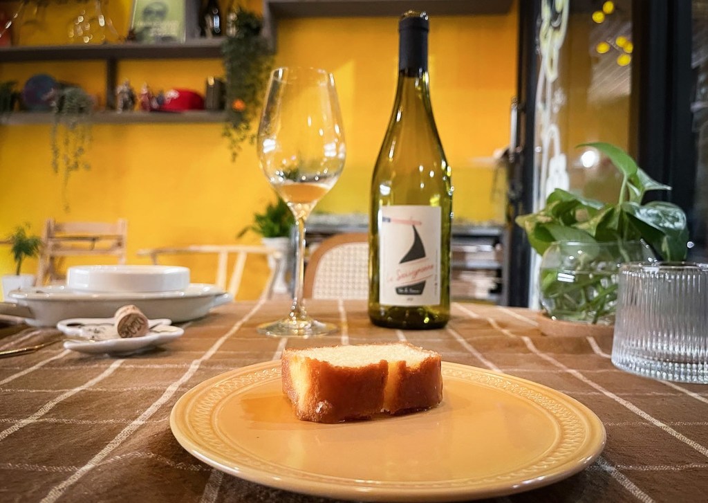 傍晚了,乾脆點份焦糖磅蛋糕來吃吃看,並搭配剩餘的橘酒。這是店家與一位專門料理的法國甜點師的作品,既然有這樣東西,我當然也想要試試。