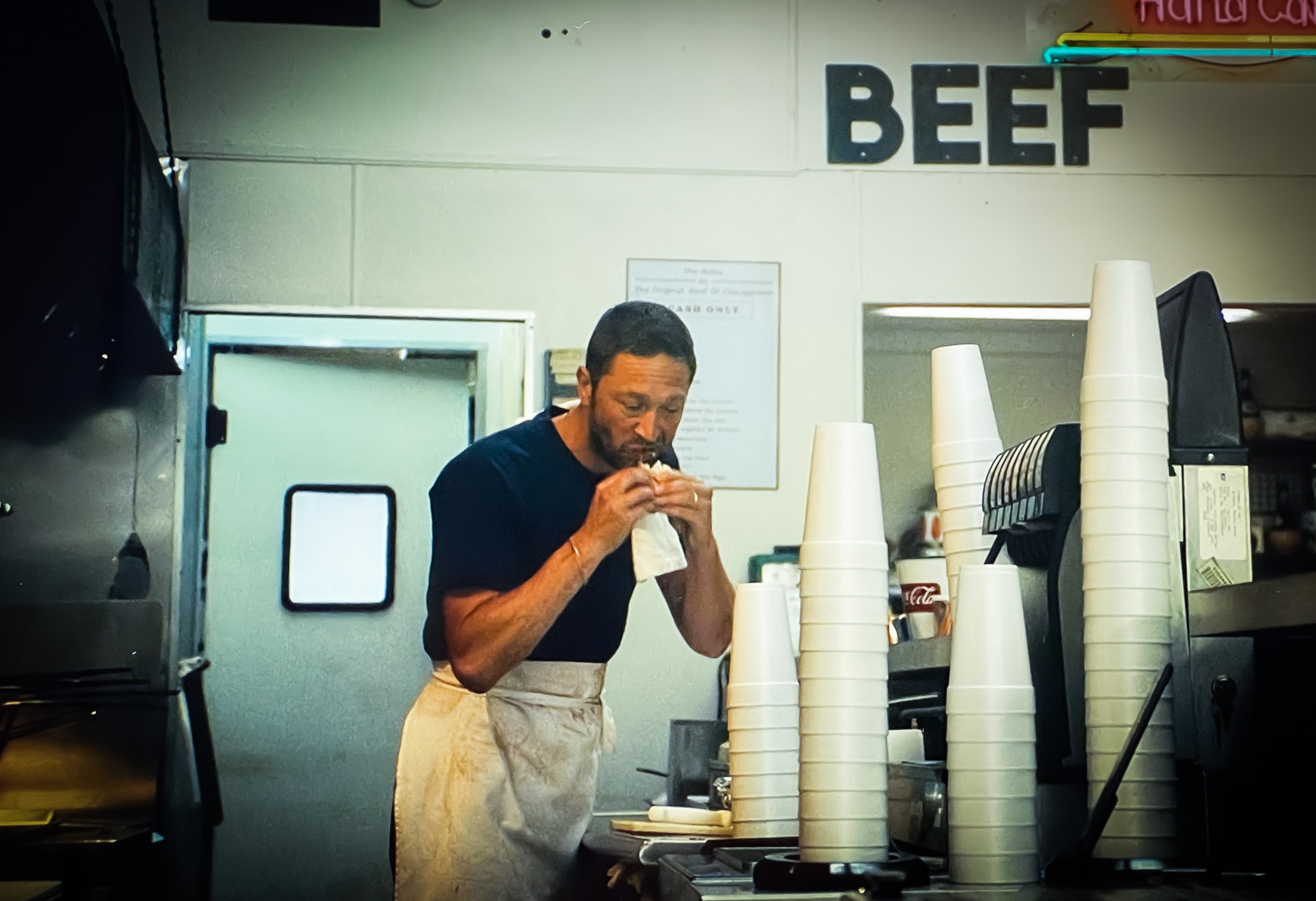 事實上,「芝加哥原汁牛肉餐」的面貌真是百廢不堪,就連進貨的肉也隨意處置,打著原汁牛肉,卻因為經費不足而掛豬肉變賣,Carmy對於餐廳的堅持,將自己寶貴的蒐藏品加上從遊戲台中取出的零錢,用去換一批好牛肉,回到餐廳後,他也憑藉著對料理食材的經驗與靈感,調味、料理。當然,經過一連串的不信任嘲諷後,當試吃時間時,吃了他的料理後,每個員工都大感驚訝,美味的不得了。