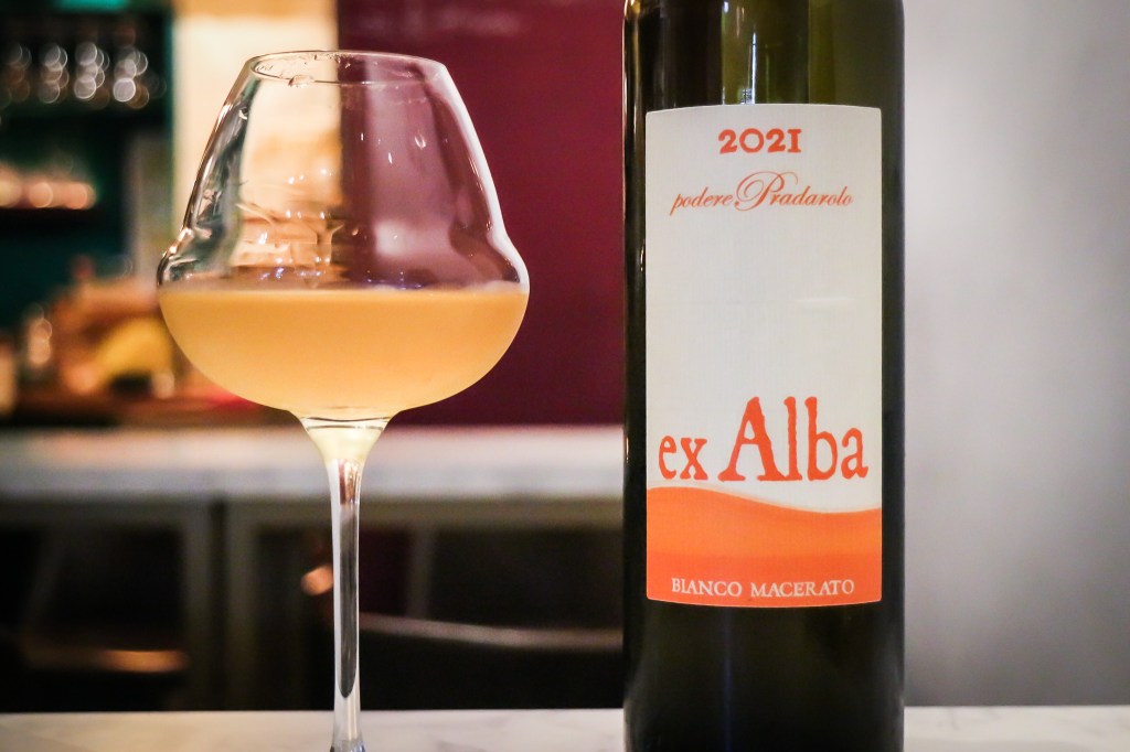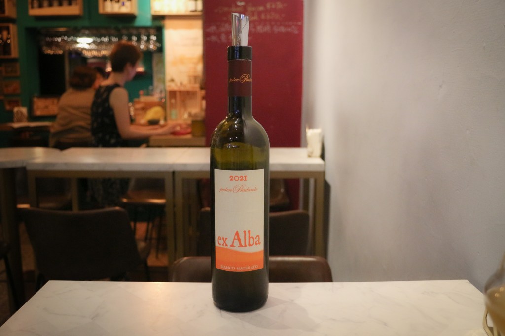 看了一下葡萄酒,看來又有些不一樣的橘酒,心中所想,天氣熱,又穿長襯衫,那麼就喝橘酒吧,選了這支Podere Pradarolo Ex Alba Bianco Macerato 2021(產區:Italia-Abruzzo, 葡萄品種:100% Trebbiano D’Abruzzo)。