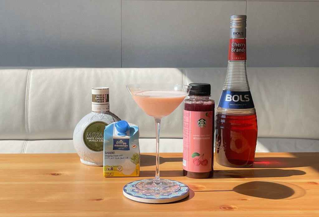 由於一大早,雖然想做的是有櫻桃蛋糕綿密感的調酒,但酒精比還是別太衝動,舒服適合早晨就好,比例如下:
