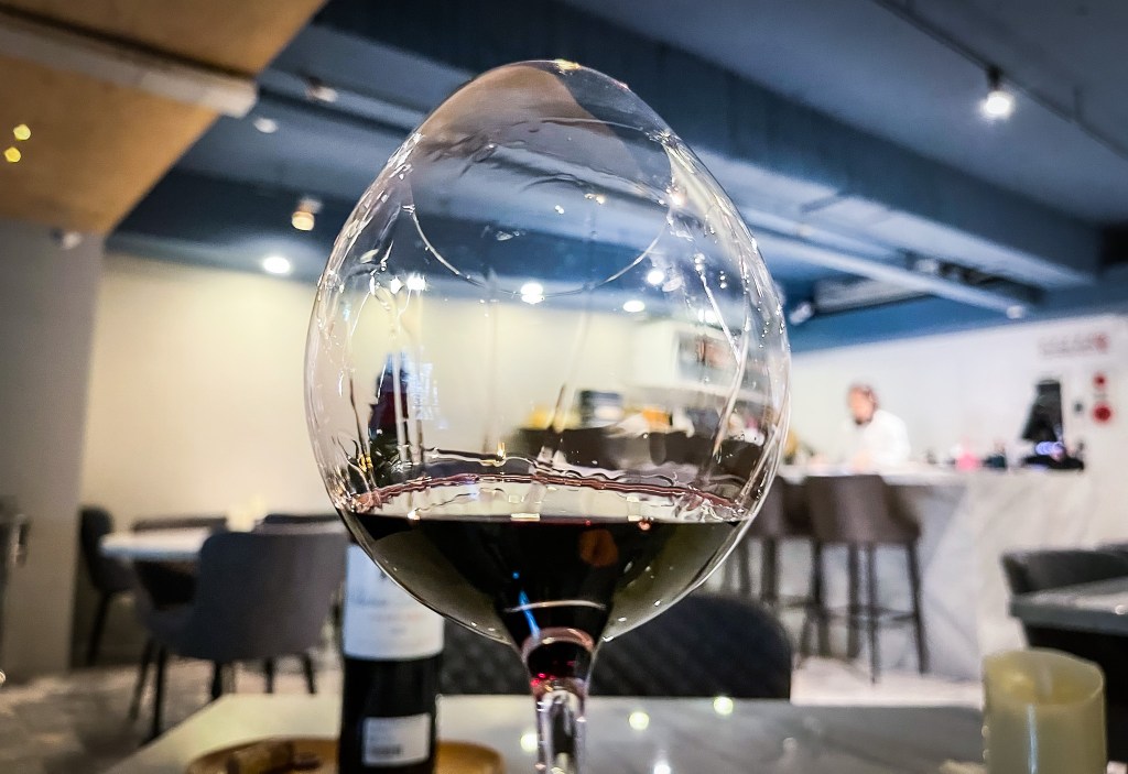 我搖晃酒杯,酒腿細緻細長,因為魅力來自用這款長款造型的Riedel Restaurant 酒杯,緩緩的進入酒面,表現出深邃、乾淨、優雅且神秘的色彩。