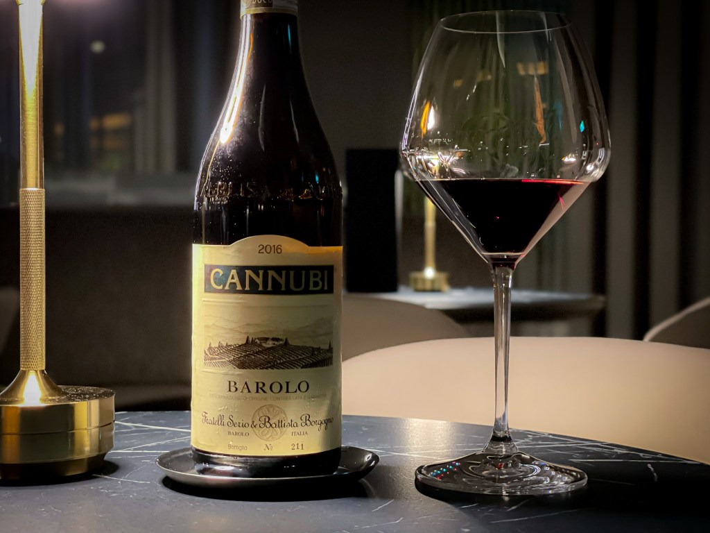 來到這裡,突然想到很久沒喝義大利的Barolo了,既然難得有酒吧會出價格符合所需的Barolo那麼就來嘗試看看,點了這支Fratelli Serio & Battista Borgogno, Barolo"Cannubi" 2016(產區:Italy Piemonte, 葡萄品種:100%Nebbiolo)。