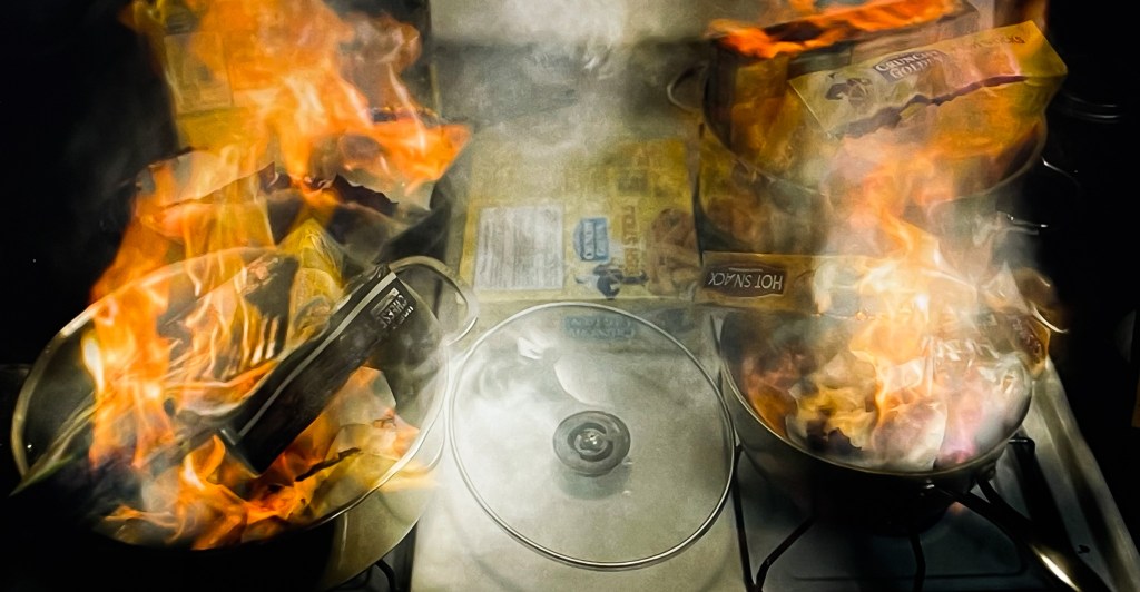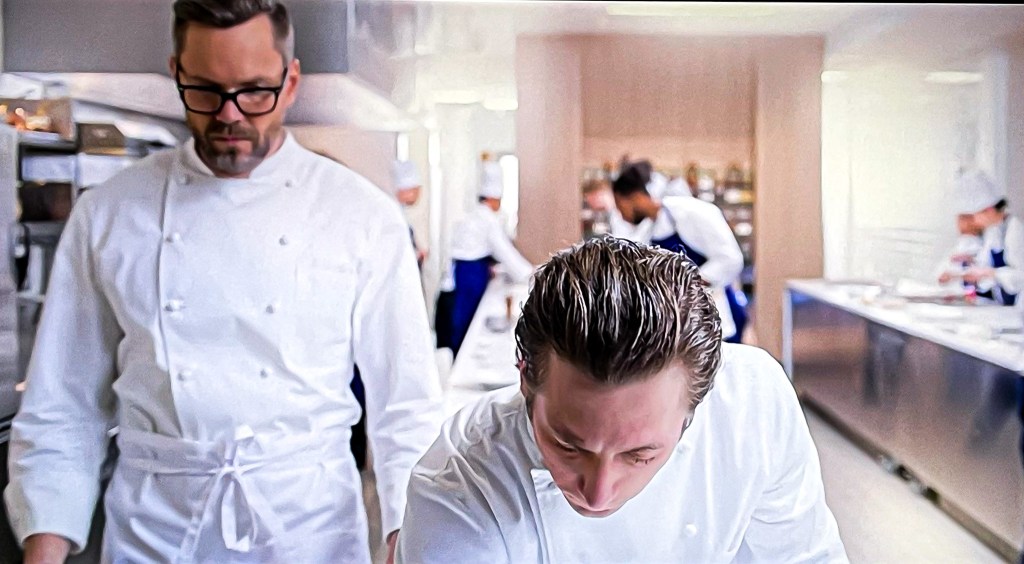 當Carmy回到租屋處,在精神與體力雙倍壓力夾擊下的他已經疲憊不堪,躺在沙發上看著電視然後睡著,他再次夢見在廚房裡被出菜的時間壓力下嘶吼、要求,然後片中以一種回憶他過去在廚房以及現在營業的各種畫面追著跑。他在料理宵夜時也無法專心都是這類畫面,然後料理檯起火,他才意識到…他的精神無法集中..驚恐地拿起滅器滅火。這表示了他身心出了狀況。