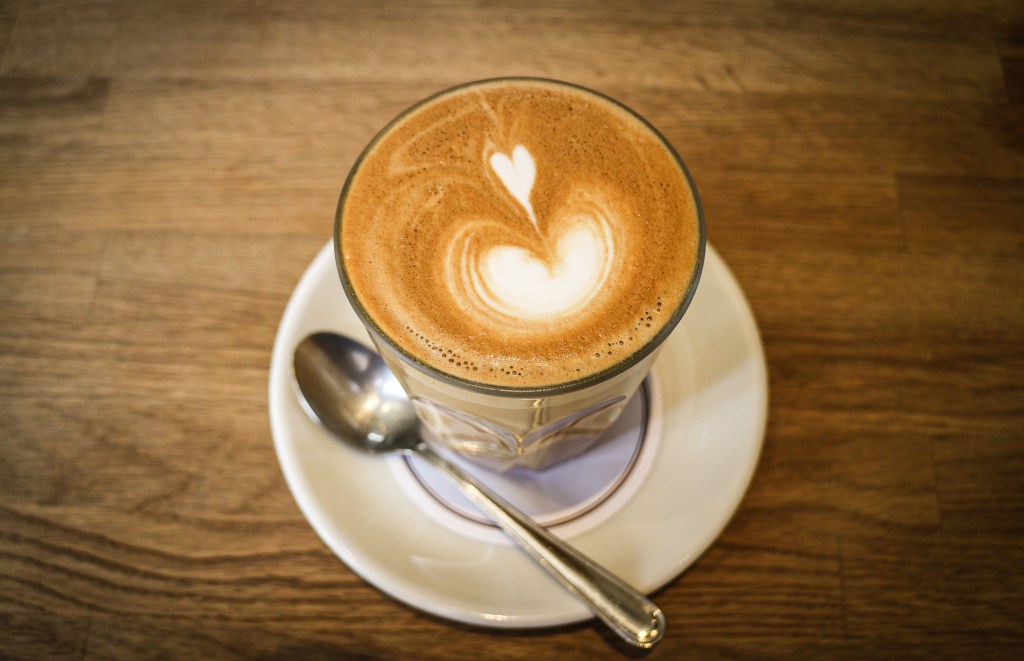 Allpress Espresso的拿鐵用透明玻璃杯裝,這類杯子也是我們所熟悉的,可以清楚看見咖啡的色澤,外層是濃香的泡沫,Barista拉出一個愛心的形狀的Coffee Art,十分美觀。