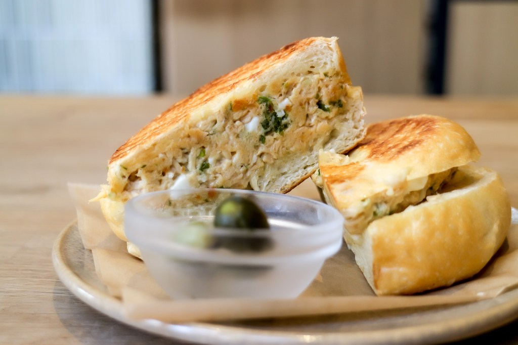 中心夾層溫熱尾魚醬並添上一些些用wasabi、蛋還有巴西利葉調和,滋味鮮,還不賴,對我來說是一款爽快的早餐。