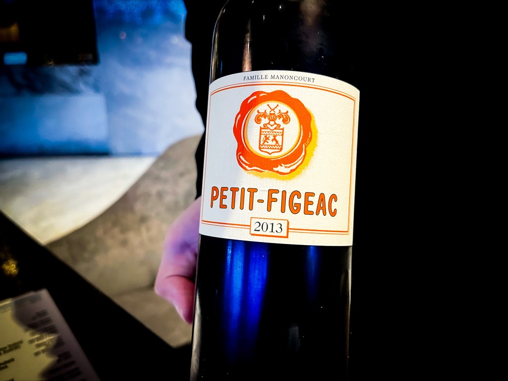 因此在酒單中周旋,最後落腳屬意這款葡萄Chateau Figeac Petit-Figeac 2013(產區:France Saint-Emillon, 品種:50% Cabernet Franc, 30% Merlot, 20% Cabernet Sauvignon)。