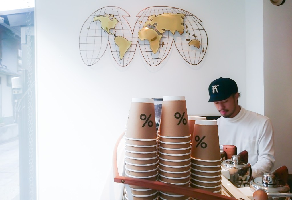 % ARABIC 的創辦人是kenneth shoji,在前往東山區清水寺途中以及設置在地標法觀寺八板之塔下,是具有獨到眼觀以及生活的觀察,同時店面的設計也十分吸引人注目,所販售的商品與咖啡也貼近大眾,倘若來東山區,要往清水寺,很難不被他吸引而入吧。