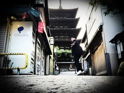 來到八坂上町這個具有悠久美好且帶著寶貴的風景,豈能不這裡大玩一下自拍,所以這也是這在裡的放鬆樂趣之一;此時此刻是沒有旅客的,天亮人煙鮮少,和不在這裡玩些自拍和匡下許多美景。