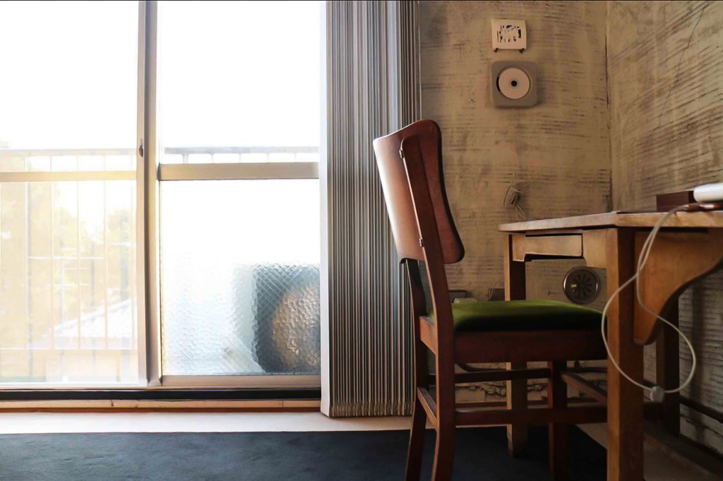 水泥牆展現著十分Loft的風格,無論指燈光還是說防火設施。這裡沒有衣櫃,以活動的衣架取代。另外還有一樣東西,也掛在第一區和第三區之間的壁掛,我研究了一下,原來這是曬衣繩啊。