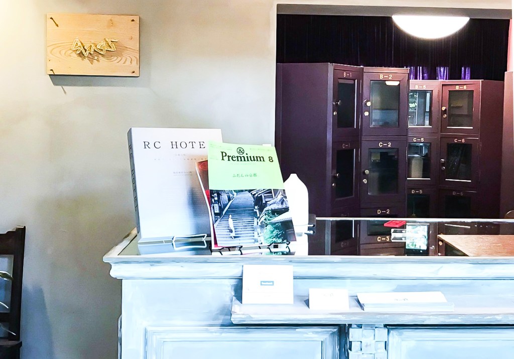 到了RC HOTEL一定會覺得該往哪進去,對的前方是一塊空地,對面是個停車場,空地前方會看到一步咖啡車,再往前走到底就會看到入口之處了,辦理入住櫃檯位於一樓。在入住前會說明一下飯店的注意事項。一旁是客廳酒吧,因為沒有供餐,白天服務人員來時會放置點心茶飲是可以免費使用,而到了晚上11:00點過後大廳門口會關閉,有任何狀況可以透過mail或電話通知,服務人員會來協助解決問題。此外,如果想上頂頭一眺京都美景,可以向服務人員說明,會由他們陪同開門,大致說明完後取得鎖匙,就可以進到我所預訂的房間了。