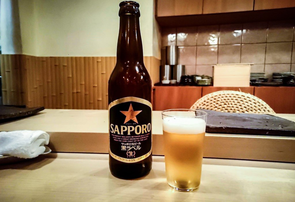 這天的位置我坐在兩對日本人之間,一個人到訪,多少會受到些許目光。再付台前的師傅問我是否要喝點酒,其實當時心想如果葡萄酒單會更好,不過餐廳似乎沒有,主要以清酒與啤酒為主,因此點了一支SAPPORO BLACK BEER,作為在壽司開始之前的飲品。