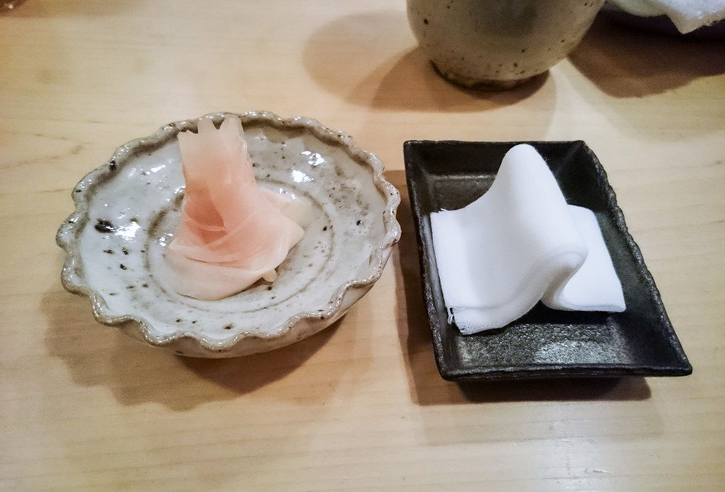 一如所有壽司店,先付了壽司薑以及擦手紙,然後服務的小妹要告訴我它的作用,不過我不太擔心用錯出糗,因為我了解這些物品的作用。
