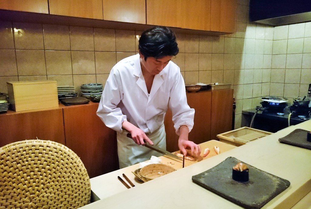 松本的技術修業是從東京的銀座久兵衛開始,陸續在新橋的清水與松本壽司工作學習。他認為任何人都可以做技能和調味,但是知道自己對於禮貌和禮儀都的練習還是欠缺,因此也持續磨練自己。選擇在京都並不是因為技術在京都或是他的家鄉,是因為被京都的環境所吸引所以在此開業迄今。