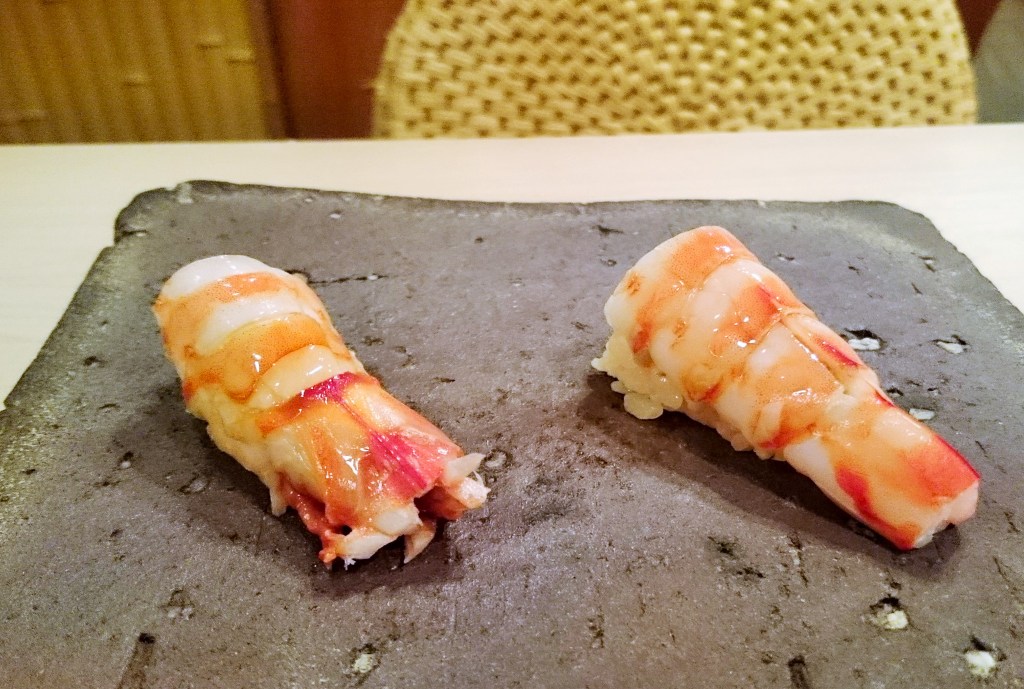 師傅將明蝦切成兩段並非別做成握壽司,靠..好吃,跟喜樂一樣,尤其蝦肉超有咬勁。