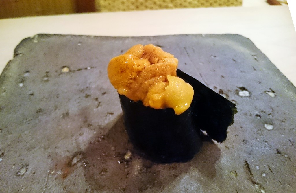 第十五道料理今天第十四貫握壽司是「海膽軍艦」。
