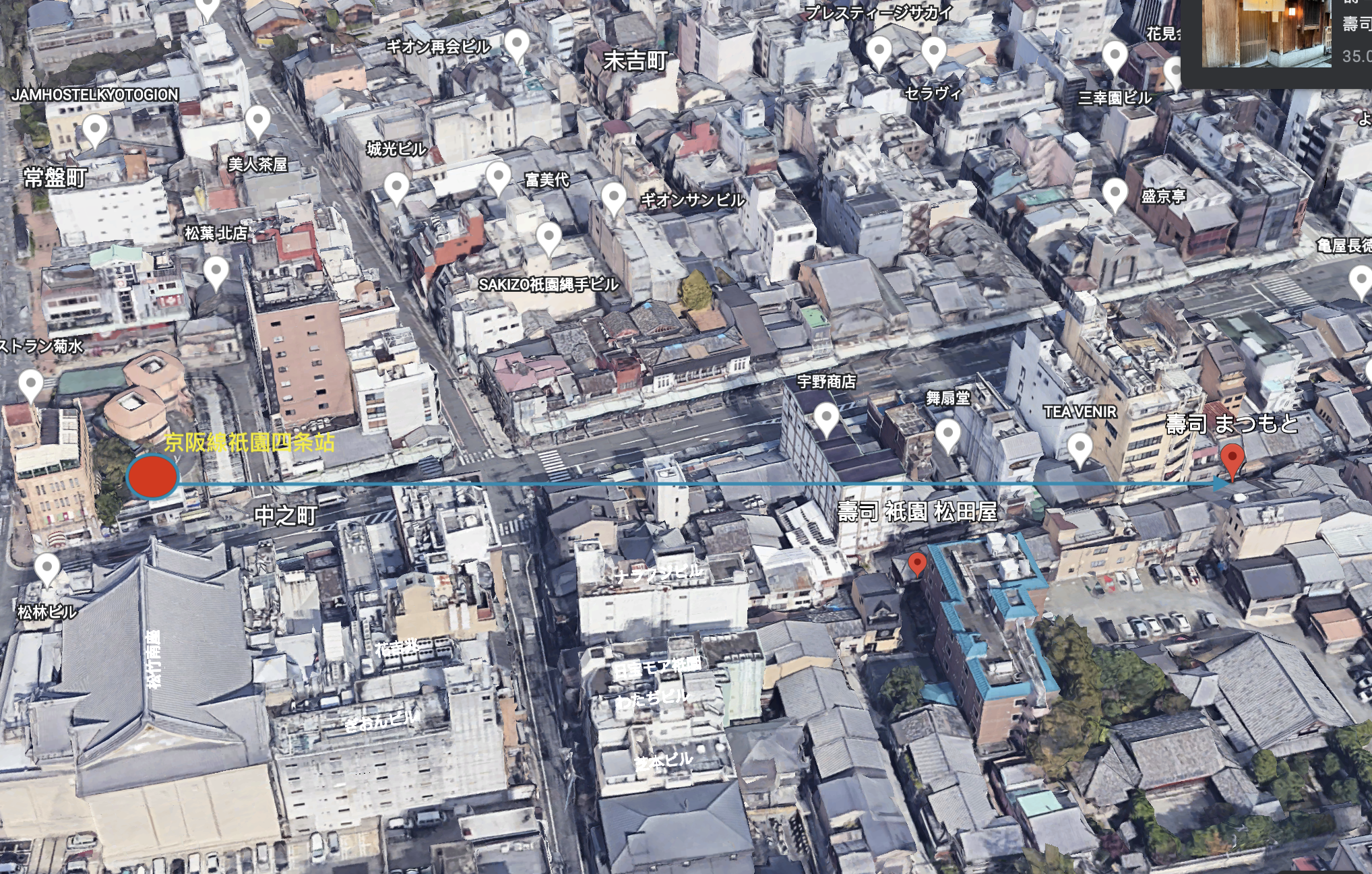 來到京都已經是下午兩點了,今天要去的餐廳是位在京都祇園花見小路小巷裡的壽司餐廳「鮨まつもと」,原本是訂中午的位,因為來不及,因此調整為晚上。記得當時定餐廳還挺麻煩的,尤其是壽司店,有時他們也會顧及有關語言溝通的問題,而不接受外國人訂位,當然如果是有日本人帶路就絕對沒問題。所幸有朋友幫忙,讓我也可以嘗試到第一次、一個人、坐在日本的握壽司餐廳裡用餐,儘管天冷、緊張,但還是相當的開心。