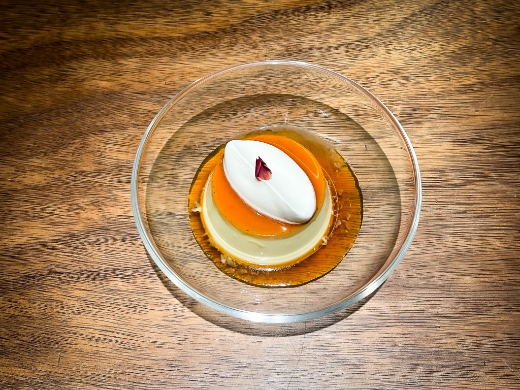 這款布丁一如常見,口感有點像昭和一樣單純,味道不算過於形色,微微的些許的香草籽,添加一些香草清味。當然重頭戲是甘甜的、焦糖的焦糖漿,甜蜜滋味非常適合我這嗜甜鬼。添加白色的奶油也多添加了優雅奶香,乾燥花的裝飾也相對提升價值。