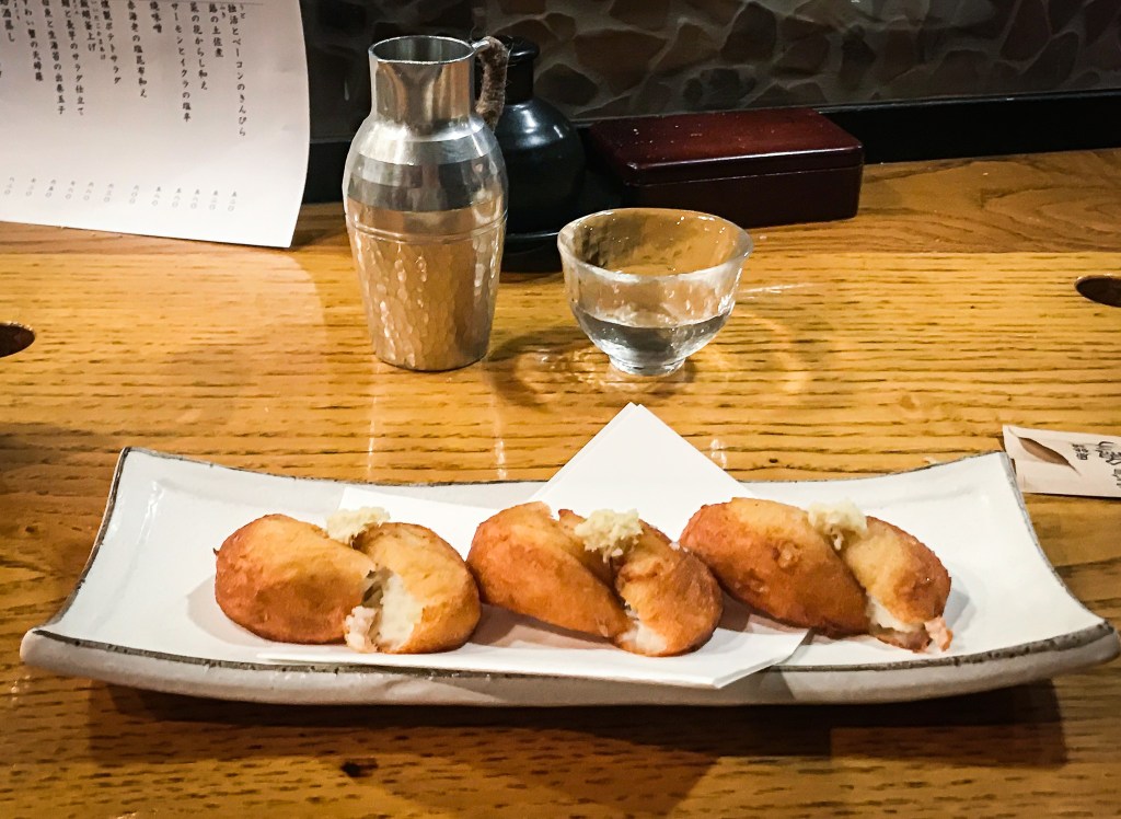 這道菜是店家自製的魚漿天婦羅。用輕薄的烤魚漿皮包裹,其內餡是熱疼泥狀的熟魚漿,非常可口好吃海味十足,正點阿!