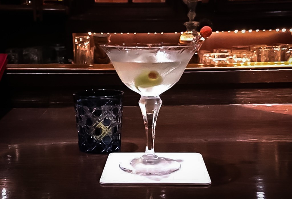 第三杯調酒,看來穿著適合搭配馬丁尼才有儀式感,那麼就來杯「Dry Martini」(Hendrick Gin, Gordon Gin, Noilly Prat, Lemon Peel, Olives)