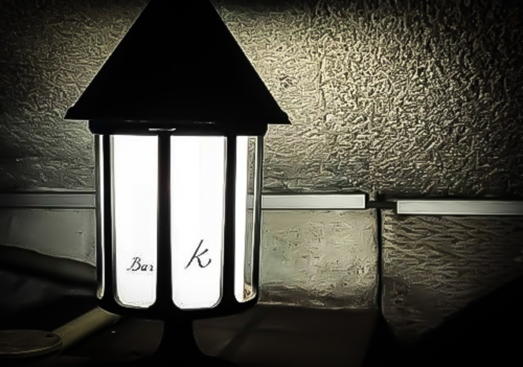 Bar,k即是位於堂島上通的街道裡,如果不特別關照可能有會過門而不入,光看霓虹燈標示可能會誤認。下地下室後,推開門,一種帶著英倫經典風格。儘管空間不大,幾張桌椅之外就是吧檯了。在這可以選擇一些經典調酒,此外酒單上也有些特調可以選擇。
