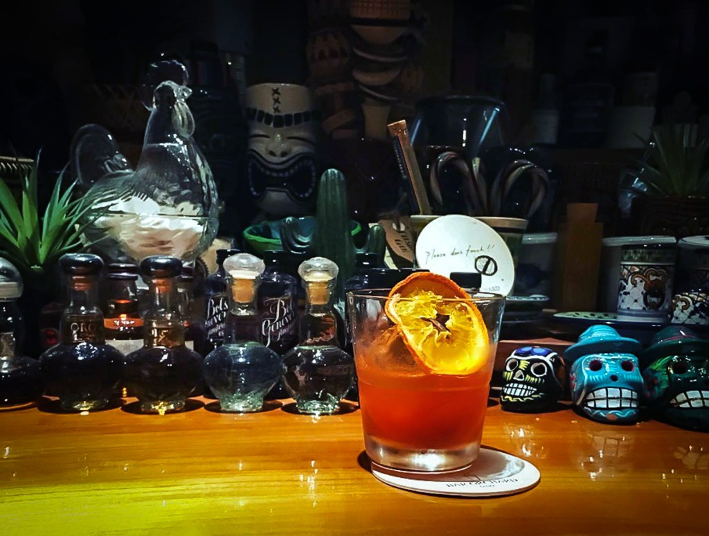 第二杯是老經典,儘管我來到日本,仍然喜歡點這一杯酒。宮之原先生問了我想要用哪一款威士忌,此時也沒想太多,看到了熟識的Maker’s Mark我就選定了用它作為主角。經過一連串製作老經典的節奏與步驟,搗碎糖、加入苦經、攪拌、在磨糖,注入威士忌,再攪拌,在底部壓了些橙皮增加果香味,完成後放上一片風乾的柳橙片,最還噴上柳橙液,而不是用橙皮擠壓出。