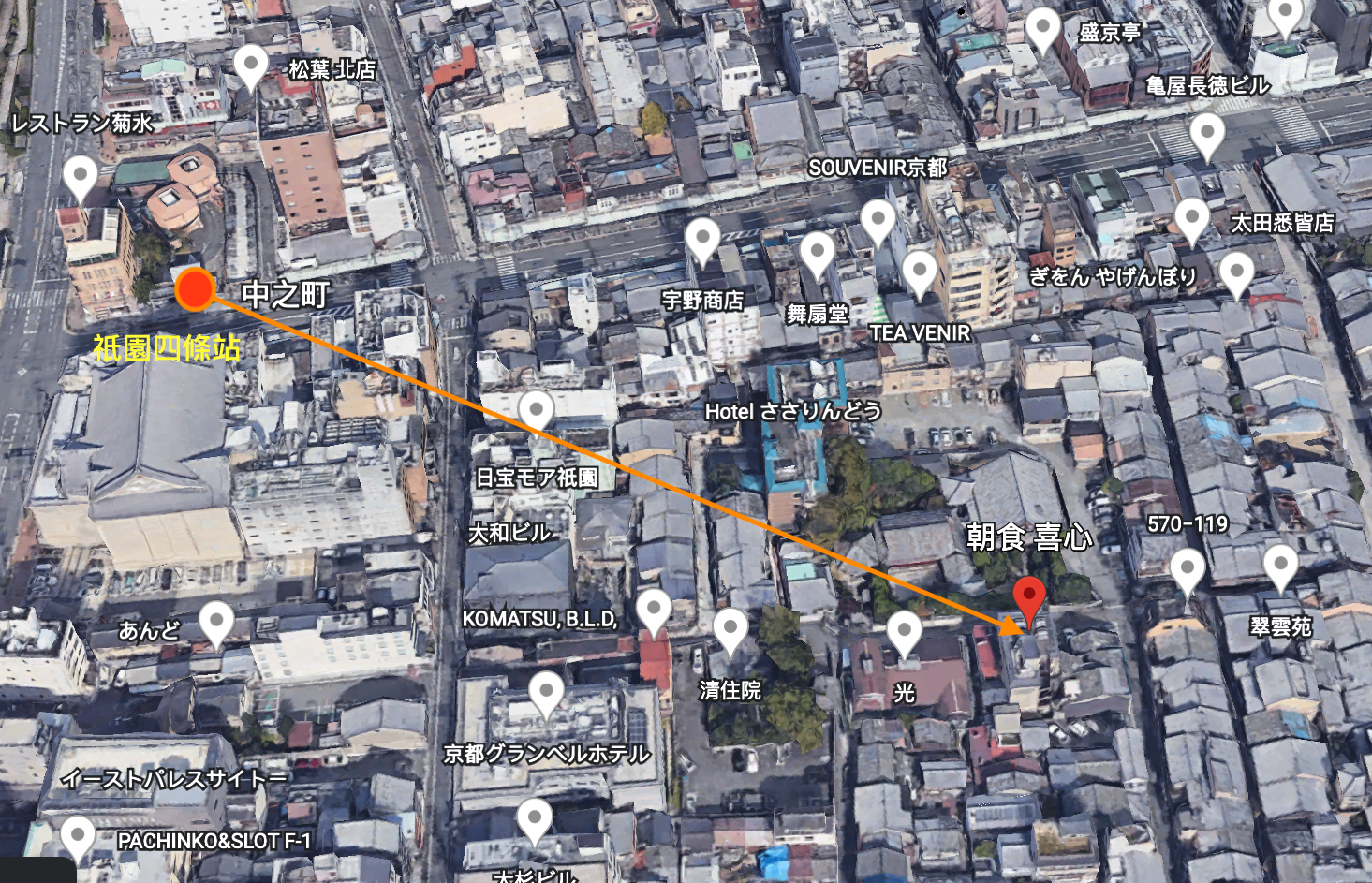 不過…嘿嘿…我的用餐地點可不是一樓大廳的餐廳,而是要出門,且距離僅不到150公尺吧,早在旅行前規劃,我在日本雜誌「Brutus Casa京都特別版」看到了這間早餐餐廳,而深感興趣,訂了這間餐廳「朝食喜心」。
