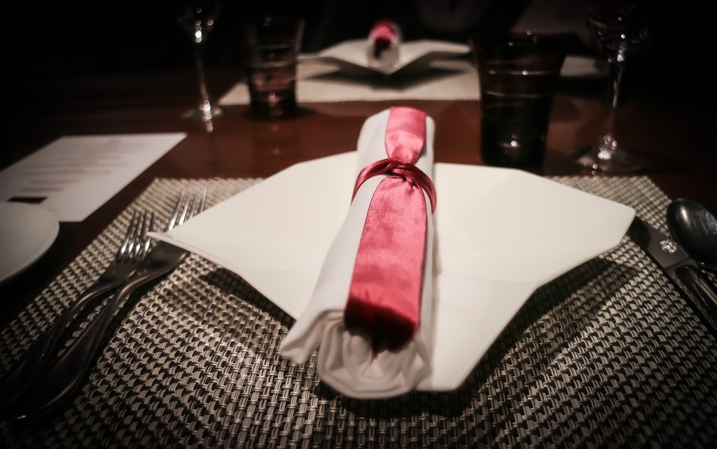 菜單等一切都已經準備好了,同時桌上也有今晚的菜單。套餐中可以選擇一杯餐前酒,可以選擇香檳或是紅酒,而我選擇了紅酒,然後再點一支白酒助興。