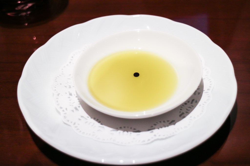 當吃完第一款之後,侍者看見便會再多添上麵包,直到你向他說不為止…。一盤口味如初榨橄欖油的風味口感,連色澤都有些許偏綠,中間點綴了一滴酒醋,作為麵包沾料,我不知不覺的吃了很多塊。