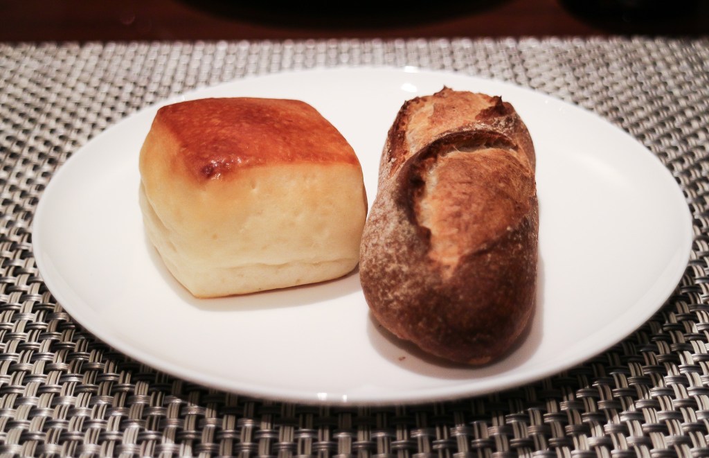 侯布雄餐廳的模式是我們比較熟悉的,這裡不是以麵包籃呈現,還是先上兩款不同的麵包。