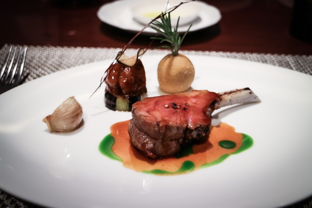 第六道是第二主菜「Roasted Rack of Lamb, rosemary croquette, braised Lamb sweetbread」。