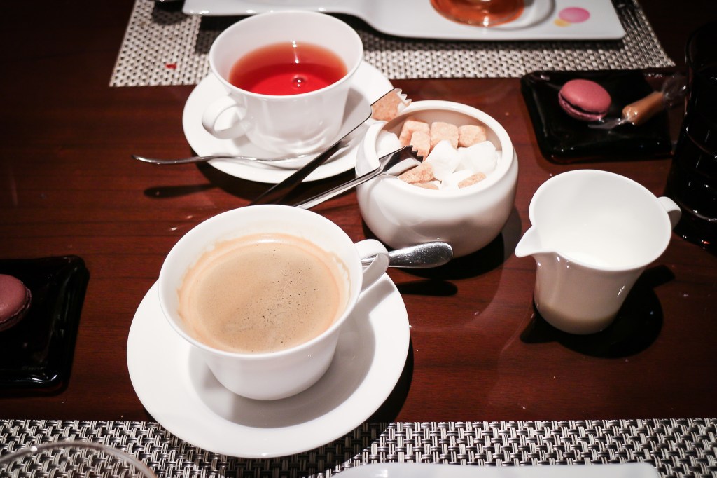 第八道餐後飲與點心是「Coffee&巧克力馬卡龍、焦糖牛奶糖還有熔岩蛋糕」。