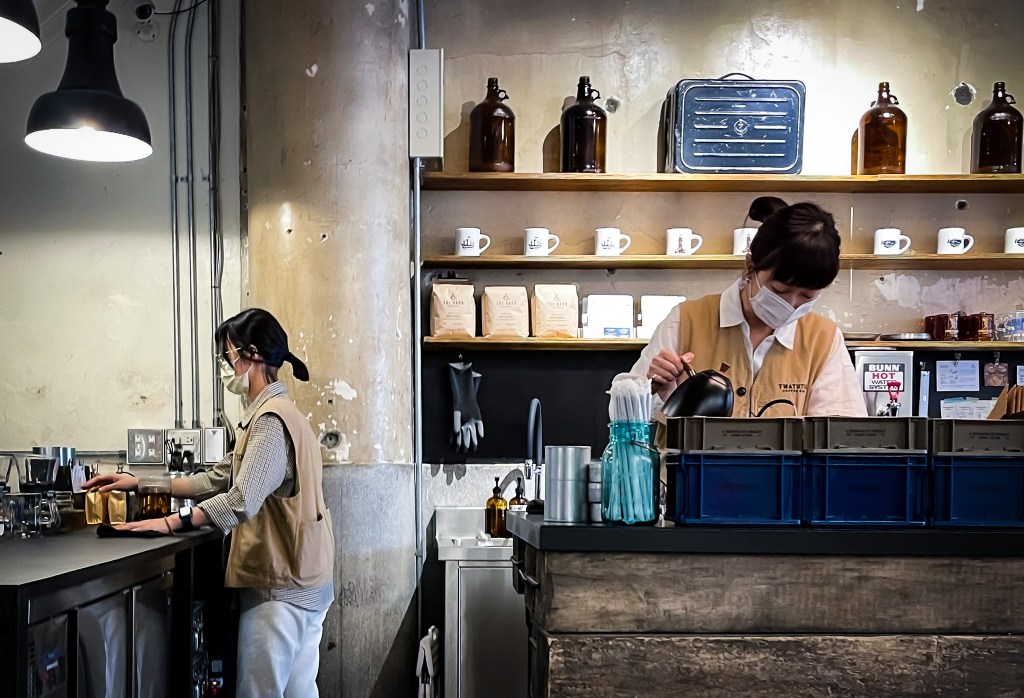 喝完一杯拿鐵,我稍作休息。享受一下這樣的老環境以及所播放的音樂。儘管工業風讓環境有些冷意,但逐漸多的人潮以及轟隆作響的咖啡機以及佈滿咖啡香的空間,也帶來一些暖意。
