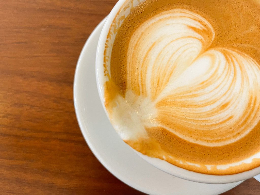 飲下,反應出牛奶的甘醇口感,正能提振一下精神士氣。大氣的咖啡拉花,落在大口杯的咖啡杯中,溫熱口感正是我熱愛拿鐵之處。
