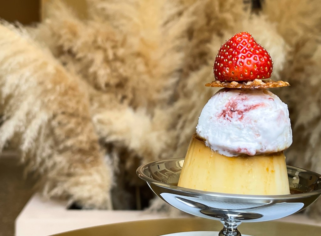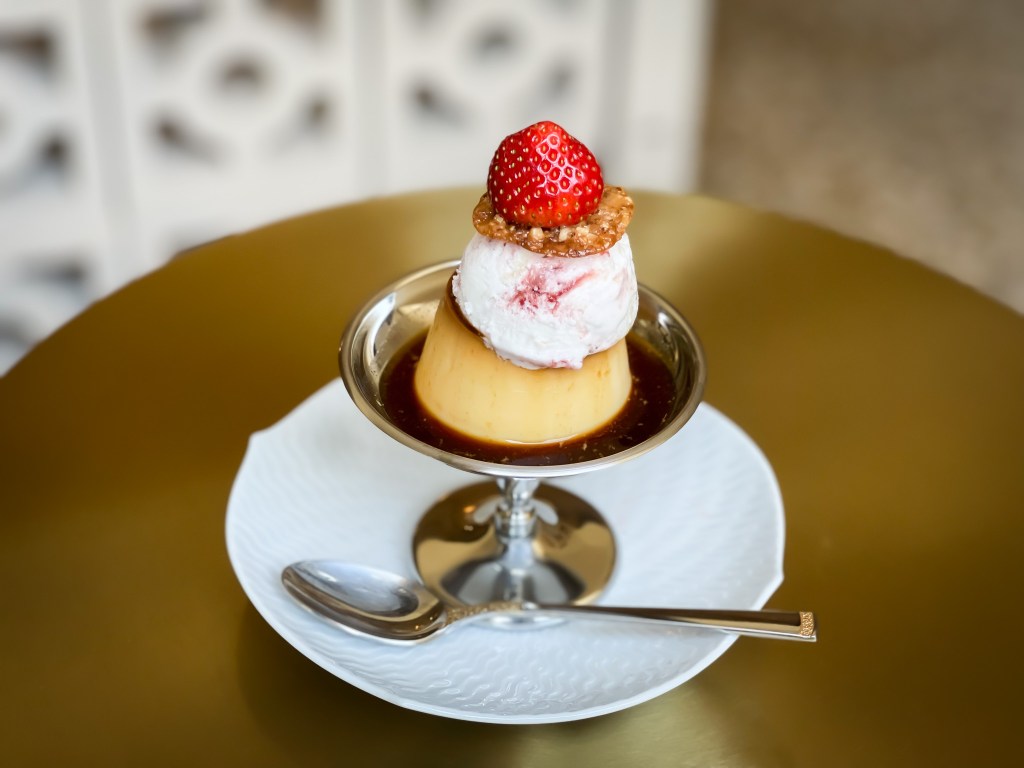 草莓、脆餅、草莓冰淇淋、布丁、糖漿,拍照時可自行將草莓放在上頭層層堆疊,果然青春無比的甜蜜點心。不知覺的,也退暑了一點。