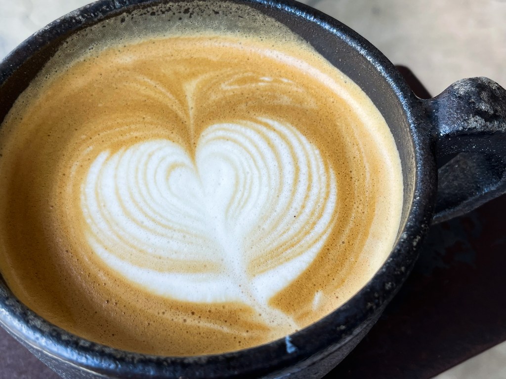 氣味帶著鮮明的咖啡焦香,熱蒸奶的奶香甜、舒適的有點原味巧克力香味。先喝一口,綿柔而滑順香稠的滋味,柔和的牛奶帶著優雅的氣息,香濃不過嗆的咖啡香是今早的需要。