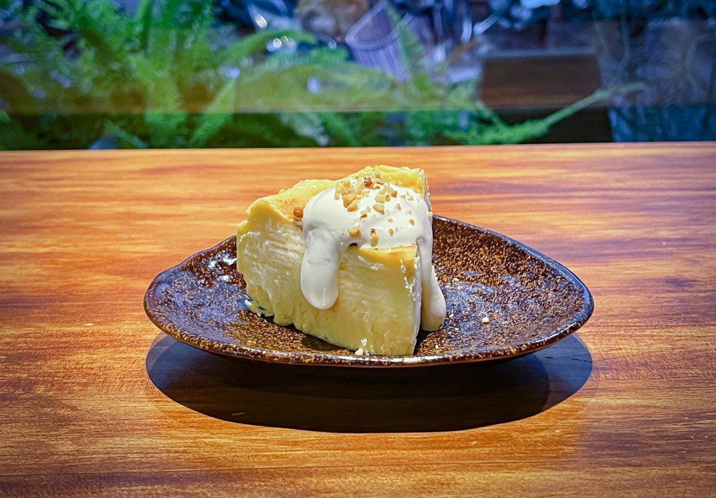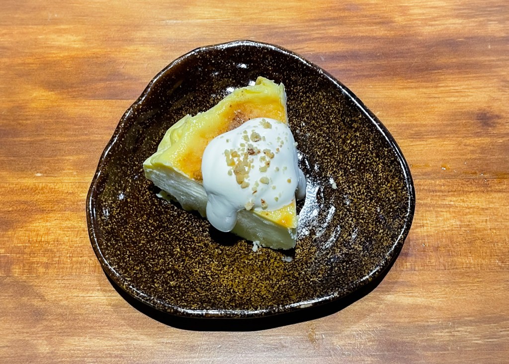 看來這塊冰巴斯克乳酪是冰凍風味的,淋上打發奶油還有一些碎塊的滋味如麥維他餅乾,儘管冰凍吃法難免壓抑乳酪的甜美滋味。