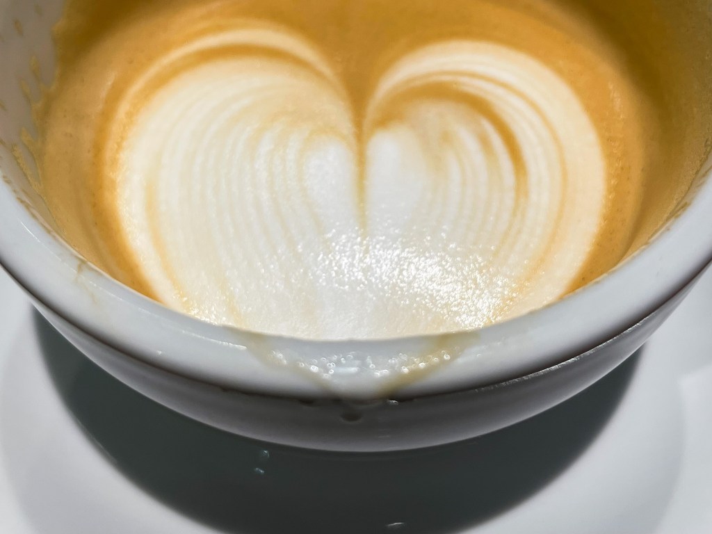 飲下,確實柔和,圓潤輕軟滑順牛奶泡沫帶著香甜可口的滋味,咖啡的烘焙感覺沒那麼重味,引出一些花香,穀物以及與牛奶融合的香甜感。